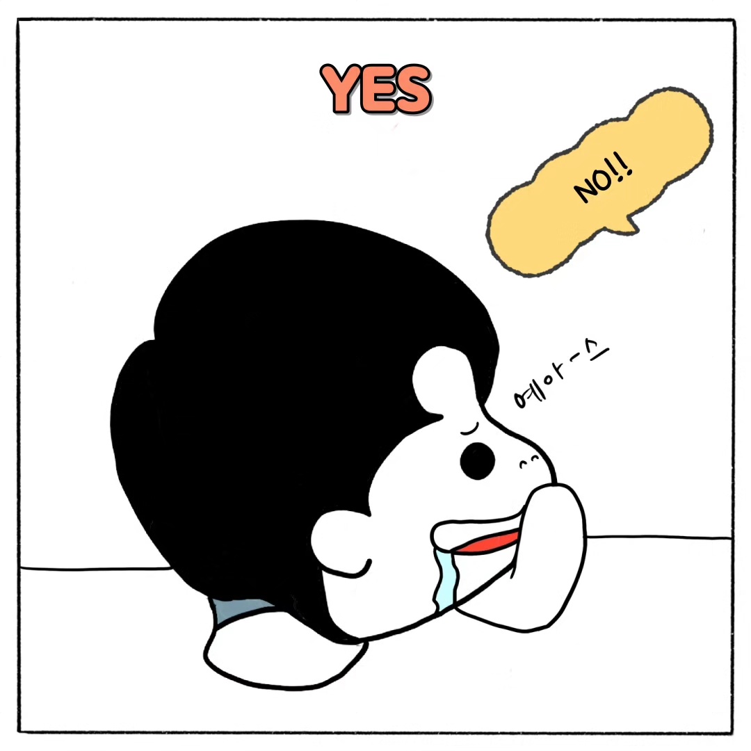 그러다가 남자친구는 귀찮다는 듯이 "yes"라고 말하기도 하는데요. yes라고 말하면서도 계속 대답해 주는 무뚝뚝한 남자친구도 보여주며 여자친구는 해맑은 표정으로 끈질기게 물어봅니다. 그래서 저도 남자친구에게 따라 해봤어요.